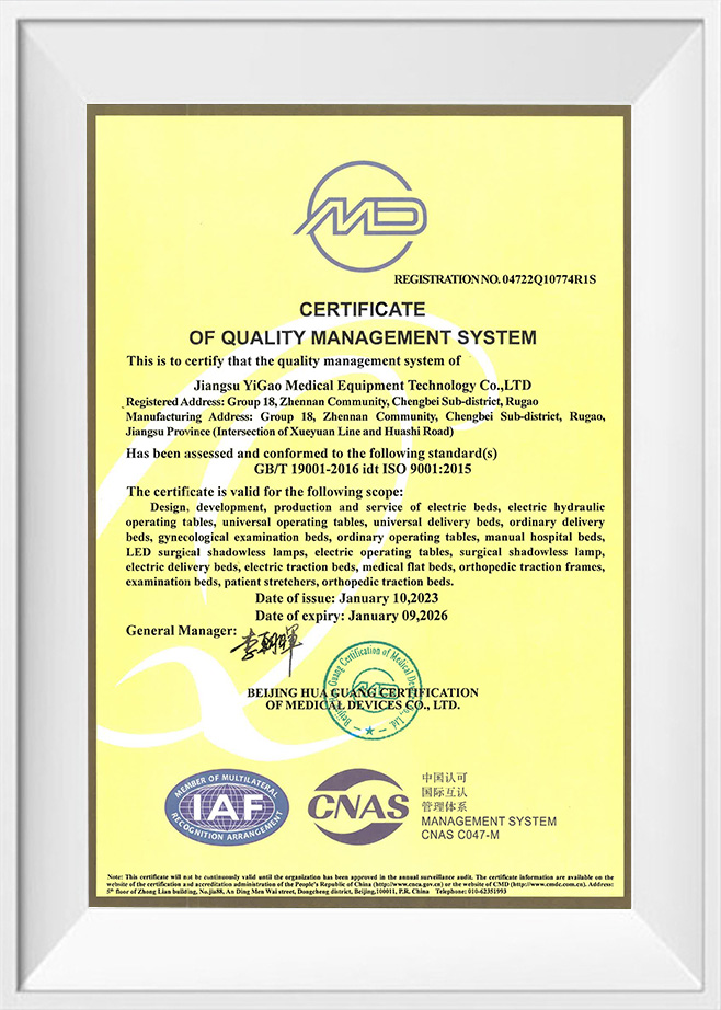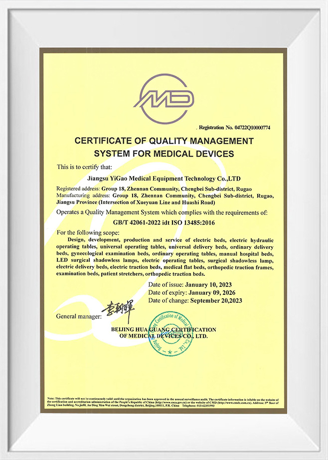 Registreringscertifikat for kirurgisk skyggefri lampe