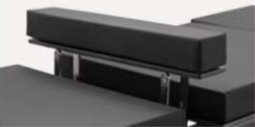 Sengegavlen har en dobbelt ledstruktur, som kan justeres for at gøre sengegavlen og bordet horisontalt parallelle.